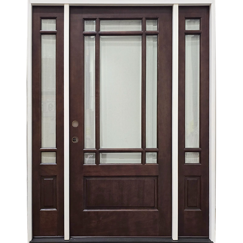 Diamond Granite Full Lite Mahogany Wood Door Unit with Sidelites #393