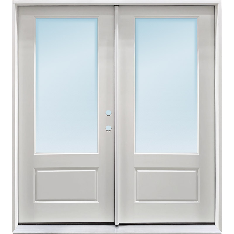 Privacy Glass 8'0" Tall Full Lite Fiberglass Prehung Double Door Unit