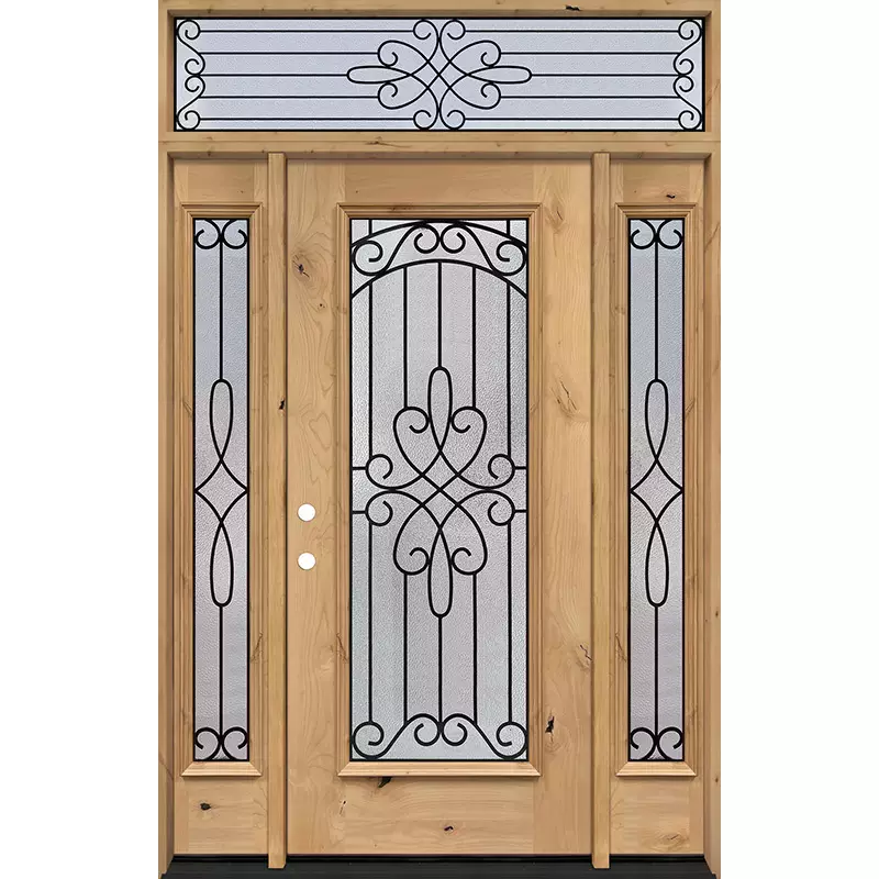 • Unfinished knotty alder exterior wood door with sidelites and transom