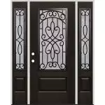 Finished Fiberglass Prehung Door Unit with Sidelites with Iron Grille #62
