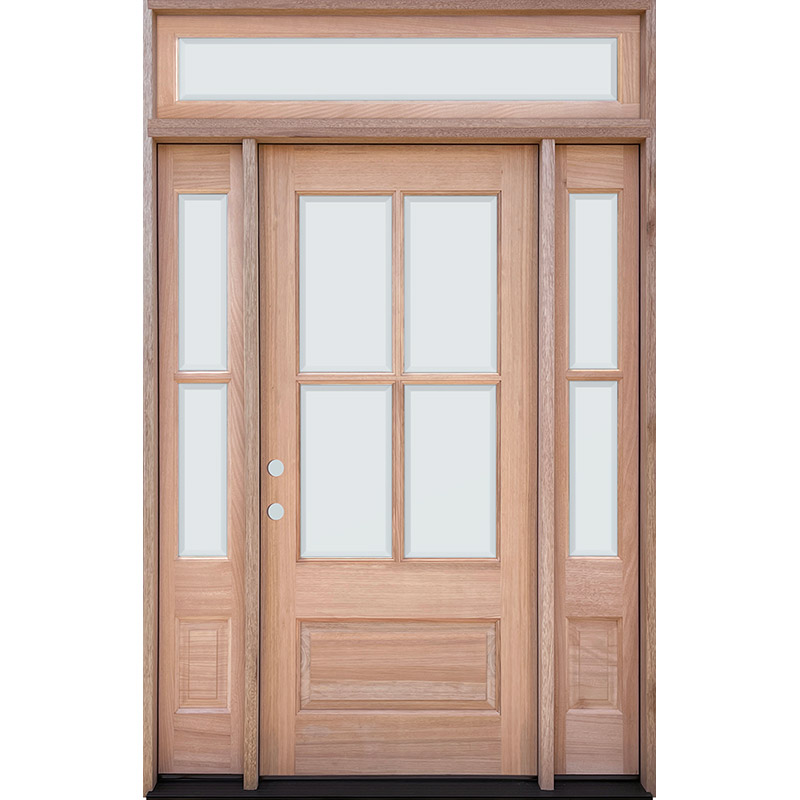 9-Lite Prairie Low-E Unfinished Mahogany Wood Door Unit with Sidelites