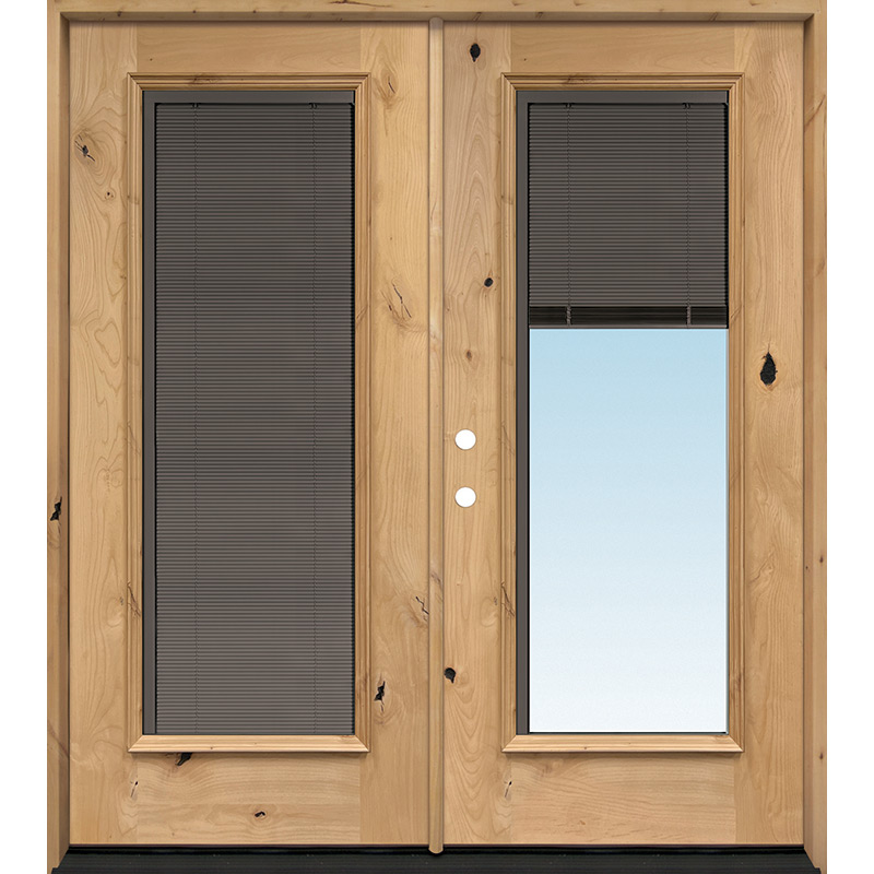 Slate Full Mini-blind Knotty Alder Wood Double Door Unit