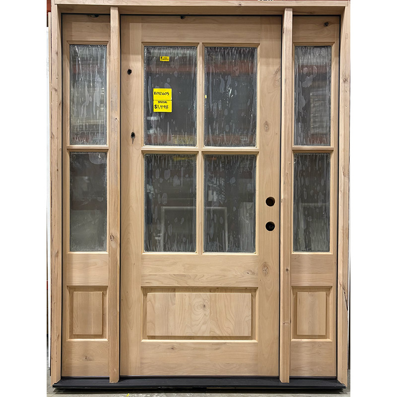 5/0 x 6/8 4-Lite Knotty Alder with Sidelites and Matching Jambs LH