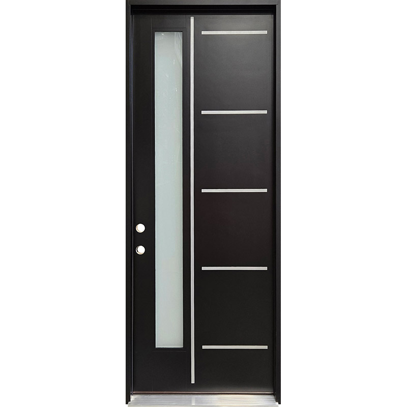 8'0" Tall Modern Vertical 1-Lite Metal Slats Black Fiberglass Prehung Door Unit