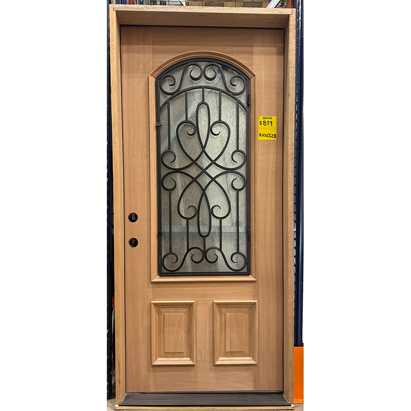3/0 x 6/8 Mahogany Door 2/3 Arch Grille #623 with 6-9/16" Matching Jambs 1RH