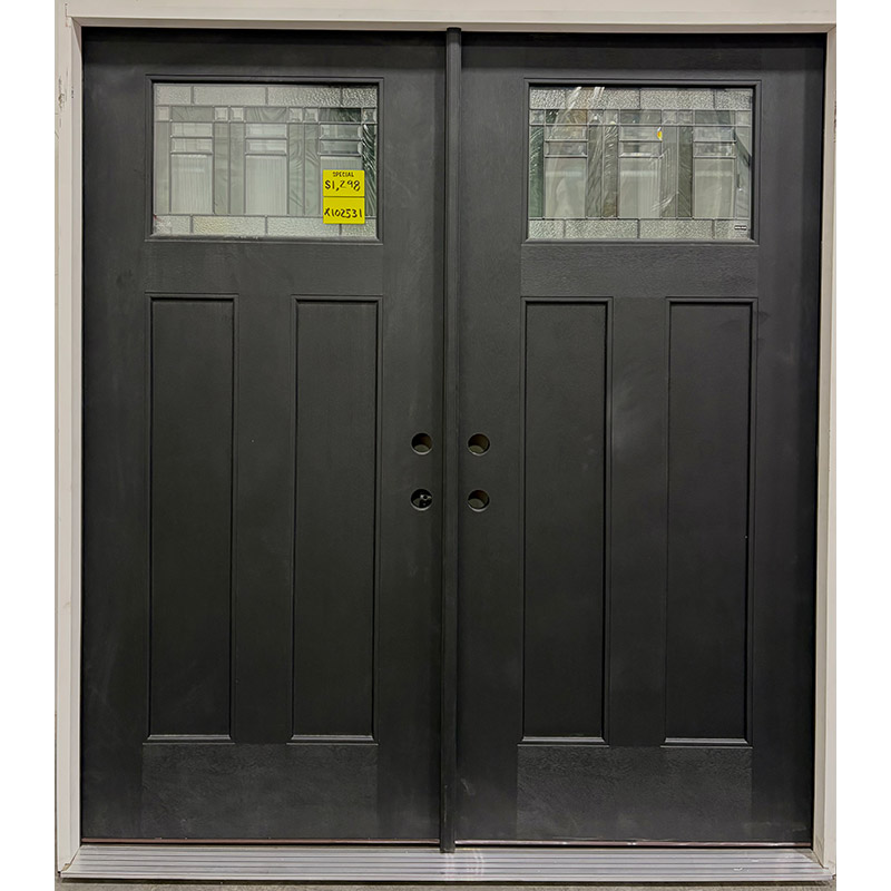 6/0 x 6/8 Prefinished Fiberglass Black Deco Craftsman Double Door