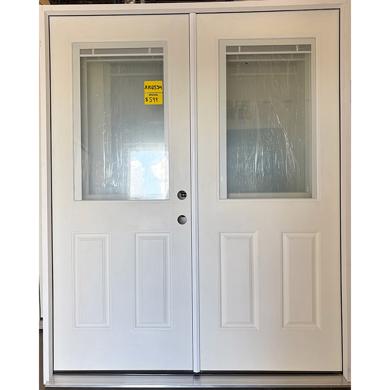 5/0 x 6/8 Fiberglass Full Lite Mini Blind Double Door 1LH & 1RH