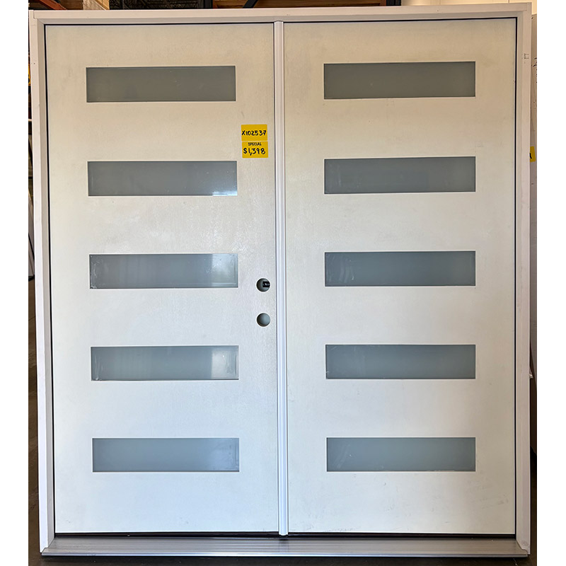 6/0 x 6/8 Fiberglass Modern 5-Lite Frosted Double Door 1LH