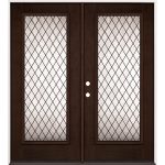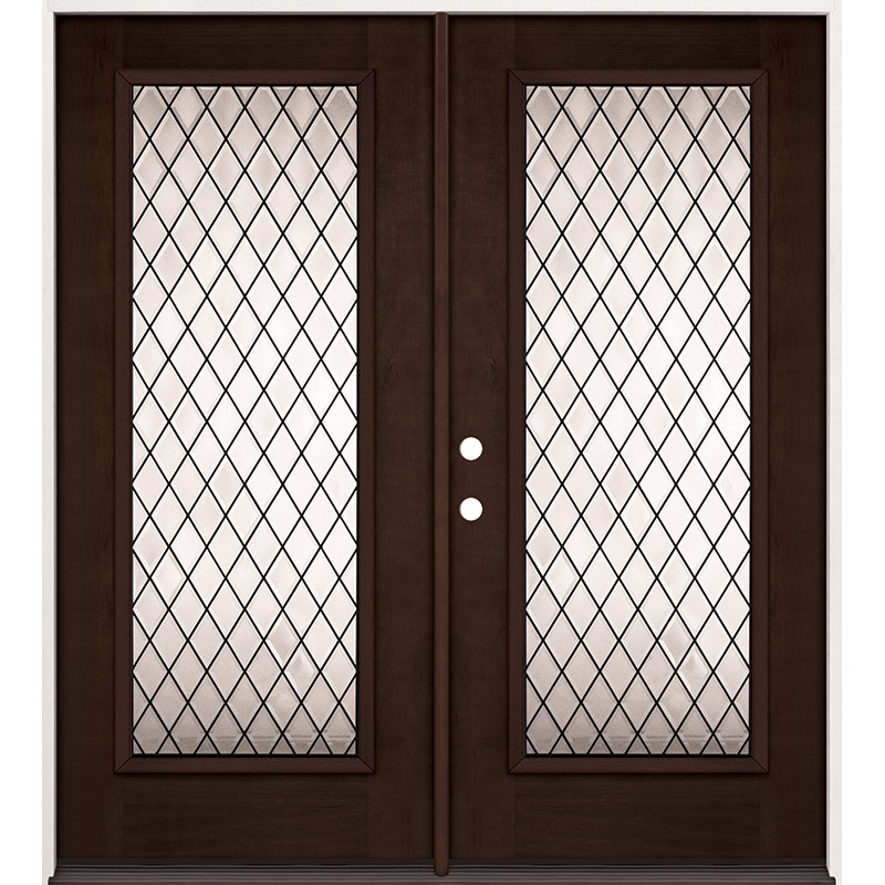 Diamond Full Lite Espresso Mahogany Prehung Double Wood Door Unit #394