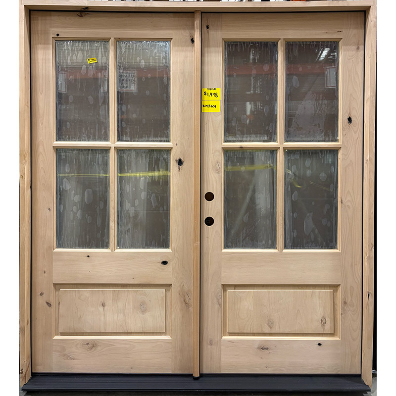 6/0 x 6/8 Knotty Alder 4-Lite Double Door with Matching Jambs RH